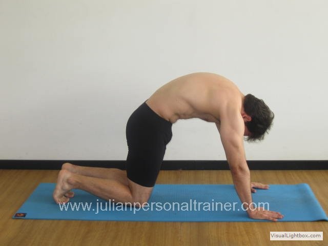 j. Cat (estiramiento de gato): (Ejercicio preparatorio) Se busca la alineación neutral, tando de la columna como de la pelvis. ver más... |