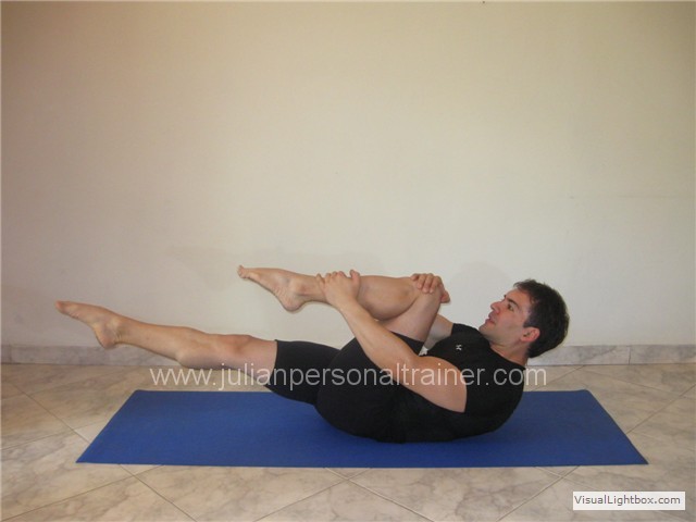 7a. Single straight leg stretch: (Ejercicio Intermedio) Acostado en decúbito supino, levantar ambas rodillas hacia el pecho, la frente hacia las rodillas...ver más... |