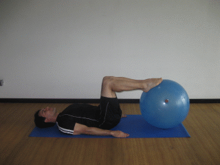 Puentes sobre el balón: Con este ejercicio se fortalecen los músculos posteriores del muslo, los glúteos y los músculos de la espalda (debes tener precacución para el trabajo con balón y más si eres una persona principiante). En este ejercicio se debe articular la columna vértebra a vértebra. Lo primero en levantarse es el coxis, y el coxis es lo último en bajar. Debes llevar además el ombligo hacia tu columna vertebral. |